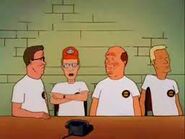 However, it quickly becomes apparent that the four friends cannot stop fighting as Hank is the only one taking things seriously; this leads to trouble such as the destruction of a fire hydrant while trying to impress a group of kids including Bobby Joseph: Hank accidentally turns the water on prematurely causing Bill to be slammed against the fire truck by a powerful stream of water, and in trying to shut the water off, Dale strips the restraining bolt and Boomhauer makes the situation worse by trying to fix it with the Jaws of Life.