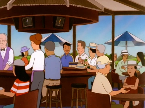 The guys want to golf, but the public course is overbooked, due to the surge in demand for golf as Tiger Woods has come to Texas. Hank decides to improvise by installing a hole in his backyard. After the guys set up a make-shift golf course in the alley, Hank is asked by Ted Wassanasong to be his guest at Nine Rivers Country Club, enraging a highly envious Kahn. Hank does so well at the game that he is offered membership. At first, Hank is surprised by his membership offer in an all-Asian club, but then chalks it up to the membership chairman appreciates his good golfing and that ethnicity was not a factor. Ted and other Nine Rivers officials are very welcoming to Hank, even putting Alamo Beer on tap just for him.