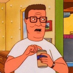 Hank Hill opening a can of Alamo Beer