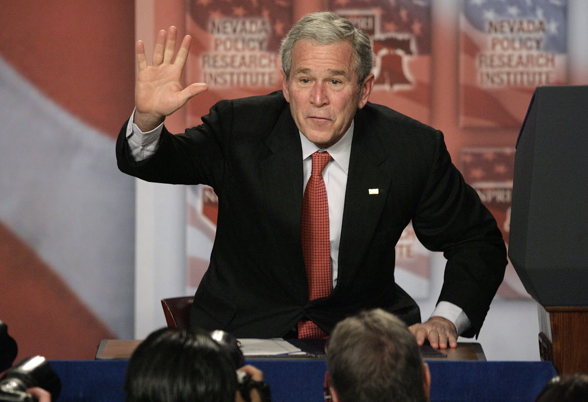 George Walker Bush (born July 6, 1946) is an American politician and businessman who served as the 43rd president of the United States from 2001 to 2009. A member of the Republican Party, he also served as the 46th governor of Texas from 1995 to 2000. The character appeared once in the Season 5 episode "The Perils of Polling". He is voiced by Jim Ward.