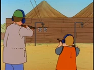 Desperate, Hank turns to Philip Ny. The psychologist's technique slowly builds Hank's self-confidence, improving his aim. The day of the tournament finally arrives. Slowly, Hank and Bobby rise through the ranks until they tie for first place. Then, without warning, Cotton shows up at the tournament. Hank's face falls. A few moments later, Bobby successfully hits his target...leaving the outcome of the game on Hank's shoulders. Despite his best effort, Hank misses. Bobby, however, is overjoyed when he and his father are awarded a second place certificate. Hank, now realizing that Bobby was just happy doing an activity with him, agrees to participate again next year.