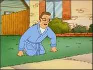 Hank is lawn obsessed. He is one proud man of his mower, his grass, and his entire layout. He would gladly sacrifice his life for his lawn. When the Cinco de Mayo block party approaches, he decides that Dale's weekly spraying onto the lawn is harmful after talking to Peggy about the problem, so he lets him go. Hank later decides to upgrade his lawn to the expensive St. Augustine grass. Peggy objects to it, but Hank explains that a man's lawn is his ultimate expression of who he is and without his lawn, he's Bill.