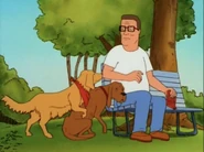 Hank, showing his strong relationship with Lady Bird, went to a dog whisperer in order to keep Lady Bird off of the vicious dog list and from being put to sleep. The dog whisperer is comparable to a yoga instructor that Hank once went to see, the type of person Hank Hill would rather not have anything to do with. When Bobby was revealed to have an allergy to dog dander, he made her a deluxe doghouse, getting choked up at the opening of the doghouse. When Lady Bird showed no interest, Bobby complimented how comfortable the house was. This led Hank to suggest Bobby live in the doghouse, and Lady Bird stay in the house, much to the ridicule of neighbors and dismay from Peggy. Hank is shown to love both his dog and son, as he has to give her up temporarily to Bill and took out the carpeting of his home in order for Bobby to be able to live in the house again.