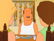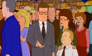 - Buckley: Luanne's first on-screen boyfriend was a monosyllabic, rude, idiotic and outright incompetent clerk at the Mega Lo Mart named Buckley. It seems as though Luanne cared a lot more for Buckley than he did for her, since Buckley's romantic zenith was presenting Luanne with a birthday present that consisted of some old, unwanted CDs, or showing up to Hank's house after he breaks up with her (again) with a box of chocolates, stating they're for himself for later. They were rarely seen speaking and when they were presented engaging in conversation, it usually consisted of Buckley making vague sexual remarks or breaking up with her. In "Luanne's Saga", during a short break-up Hank states Luanne had been with Buckley for three weeks. In the second season finale, Buckley ignored Hank's advice not to drag around propane tanks by their nozzles, causing a gas leak that eventually blew up the Mega Lo Mart – trapping Luanne, himself, Hank, and Chuck Mangione inside. The third season premiere reveals that Buckley did not survive the explosion. Luanne, Hank, and Chuck survived, but Luanne lost her hair. She took Buckley's death very hard, appearing outright traumatized. The incident led her to claim that she would quit beauty school and become a "photojournalist" (taking pictures of news broadcasts running on television). Later, Kahn confronted her, indicating that she merely "put on a strange Sinéad O'Connor act" due to her grief. Eventually, she realized that her anger was a result of her pain over Buckley's death (as well as the loss of her hair) and finally allowed herself to realize what had happened and grieve naturally ("Death of a Propane Salesman"). In "Wings of the Dope", Buckley returns as an angel in Luanne's dreams, helping her decide to quit beauty school in favor of community college. He redeems himself for his previous attitude by doing so, as we see at the end that he has earned his halo.
