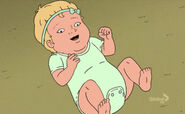 Hank quickly stops Luanne and Dale from fighting, but the damage is done - the Manger Babies are no more. With Luanne seemingly directionless, Hank convinces her that her purpose is to be a mother to Gracie above everything else. She realizes that Hank is right and shifts her focus back to her daughter. Meanwhile, Gurgle Gurgle makes its way through town (and piles of garbage) and back into Luanne's possession; it becomes Gracie's favorite toy.