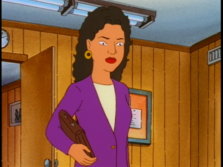 She first appears in "Junkie Business" as a secondary character. She was interviewed by Hank Hill for a job opening at Strickland Propane. Although her resume detailed much past experience in propane and she impressed Hank with her eidetic knowledge of the Vogner Char-King, Hank decided against hiring her when she told him she didn't know who was the quarterback for the Cowboys, as well as Peggy's paranoia that Hank would become sexually attracted to her. Hank passed her over in favor of Leon Petard, a decision he would soon regret.