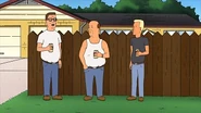 Realizing that Peggy and Hank both feel guilty he uses this to turn them against each other so he can receive gifts and special treatment. This doesn't work for long; eventually Peggy and Hank come to believe Bobby wants to spend more time with them when he really wants to go to a concert. Bobby confesses to keep his parents from embarrassing him in front of his friends. At Mega Lo Mart, Hank is picking out a bicycle to buy for Bobby when he comes across Peggy, who is also buying toys to appease Bobby. Rather than continuing their competition to win over Bobby, both parents agree that they need to spend more time with Bobby instead of lavishing him with expensive gifts. Returning home, Hank and Peggy proclaim to Bobby that they will never leave him alone again and promise to hang out with him more, discomforting him. Elsewhere in the neighborhood, Dale's idea of surviving on his own is stealing Minh's groceries and another neighbor's kiddie pool. When he attempts to start a recreational fire with a lighter and propane, he accidentally makes the canister explode.
