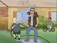 Hank Hill: (Storms in the house, and catches Bobby's baseball. Shouts.) NO - MORE - BOUNCIN' - THAT - BALL! (Throws the baseball, which breaks a window.)