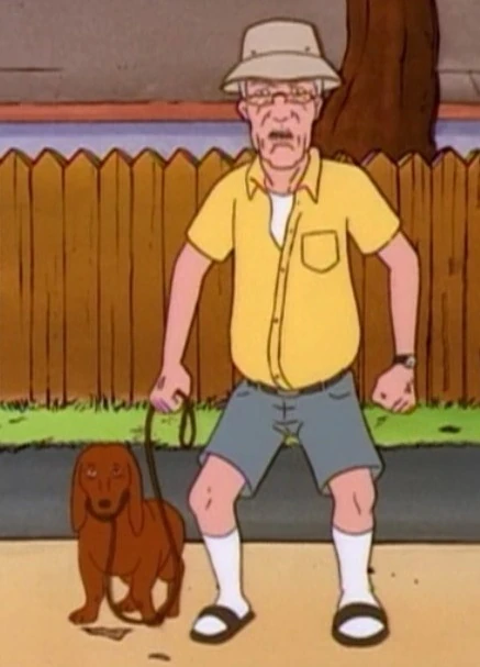 In "The Man Who Shot Cane Skretteburg", he was acting like a stereotypical cranky old man, remarking to his adult neighbors about how lazy today's youth is (substituting a leaf blower for a rake, specifically). He also had a pet dachshund.