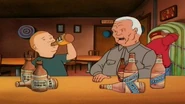 Instead of taking Bobby to school, Cotton takes his grandson to a local bar, where he tells him that he can get his food quicker by getting waitresses in "the moneymaker" rather than by being polite. He harasses the red-haired waitress with a rear-slap and by asking her to bring him and Bobby sandwiches in a sexist manner. Meanwhile, Peggy finds the missing solenoid plunger hidden in a pair of Cotton's pants. She tells Hank that his father deliberately removed the part so he could stay at the house. Events turn even uglier when Cotton's sexist remarks begin influencing Bobby's behavior. Bobby tells his mother to get his dinner and punctuates his point by slapping her on the rear-end.