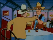 Hank takes his guest to a strip club called Jugstore Cowboys. There, he sells his heart out, waxing philosophic about all things propane. But Mr. Holloway is more interested in getting a good mint julep. Hank, at the end of his rope, says that he has had enough of Holloway's immature behavior, and mint juleps are not even stereotyped to Texas. When Hank returns with the drink, Holloway takes one sip and spits it out. Fed up, Hank tells his guest that he is in the business of "selling propane and propane accessories with honor and dignity." Holloway throws a punch, which Hank casually catches in his fist. He declines the fight, saying that Holloway can go with Thatherton Fuels as that is an appropriate place for him anyway, but not to complain when Holloway Hollows suffers from problems due to impure propane thanks to Thatherton's cutting corners. Thatherton steps in and hits Holloway in the nose. Holloway happily retaliates, and an all-out bar fight ensues. The following Sunday, Bobby tells his Sunday school class about how he admires Hank, but adds some of Hank's tall tales, much to his dismay.