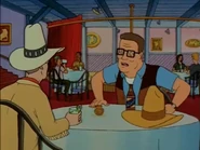 - Near the end of the episode before the huge fight, Hank stands up and grabs his hat, but his hat instead goes through his own beer.