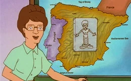 Back home, Peggy regrets ever using the power of the paddle in the first place. Hank tells her that he was saving an important speech for when Bobby would be bullied, but thinks he can apply it to the situation. Peggy is grateful for Hank's support, but refuses to hear the speech and later returns to the school hoping to find her old self–the one who could teach children without "scaring the bejesus out of them." When Dooley again makes her the brunt of a practical joke by pinning a drawing of her with her pants around her ankles to an overhead map of Spain, Peggy suddenly swings a mace over her head and swipes the picture clean off the map. Peggy then recounts to her shocked students about how innocent people were brutally punished with such a device during the Spanish Inquisition, even though they did nothing wrong and concludes her lesson by saying the worst part of the Inquisition was that no one ever apologized to the victims, as a subtle apology to Joseph. Later, Peggy asks Joseph and Bobby to help her spread mulch in her garden. When Joseph asks what the mulch is made of, Peggy smiles and says "Paddle... and goat manure."