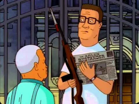- Hank stood in front of the Alamo to have his photo taken of him holding an M2 Carbine and a newspaper. This is a spoof to the picture of Lee Harvey Oswald holding a rifle and either a newspaper or brochures.